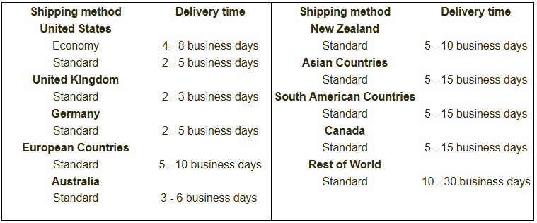 * Shipping to Alaska, Hawaii, Puerto Rico and unincorporated territories of the United States can take additional 7 – 12 business days.