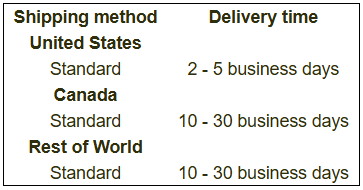 * Shipping to Alaska, Hawaii, Puerto Rico and unincorporated territories of the United States can take additional 7 – 12 business days.