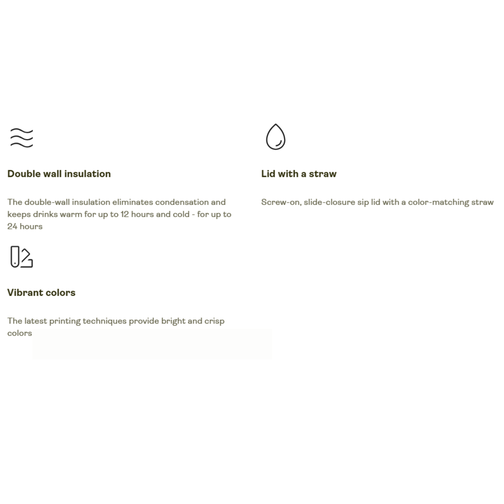 Convenient Lid & Straw – Comes with a plastic screw-on slide lid and a color-matching straw for easy sipping