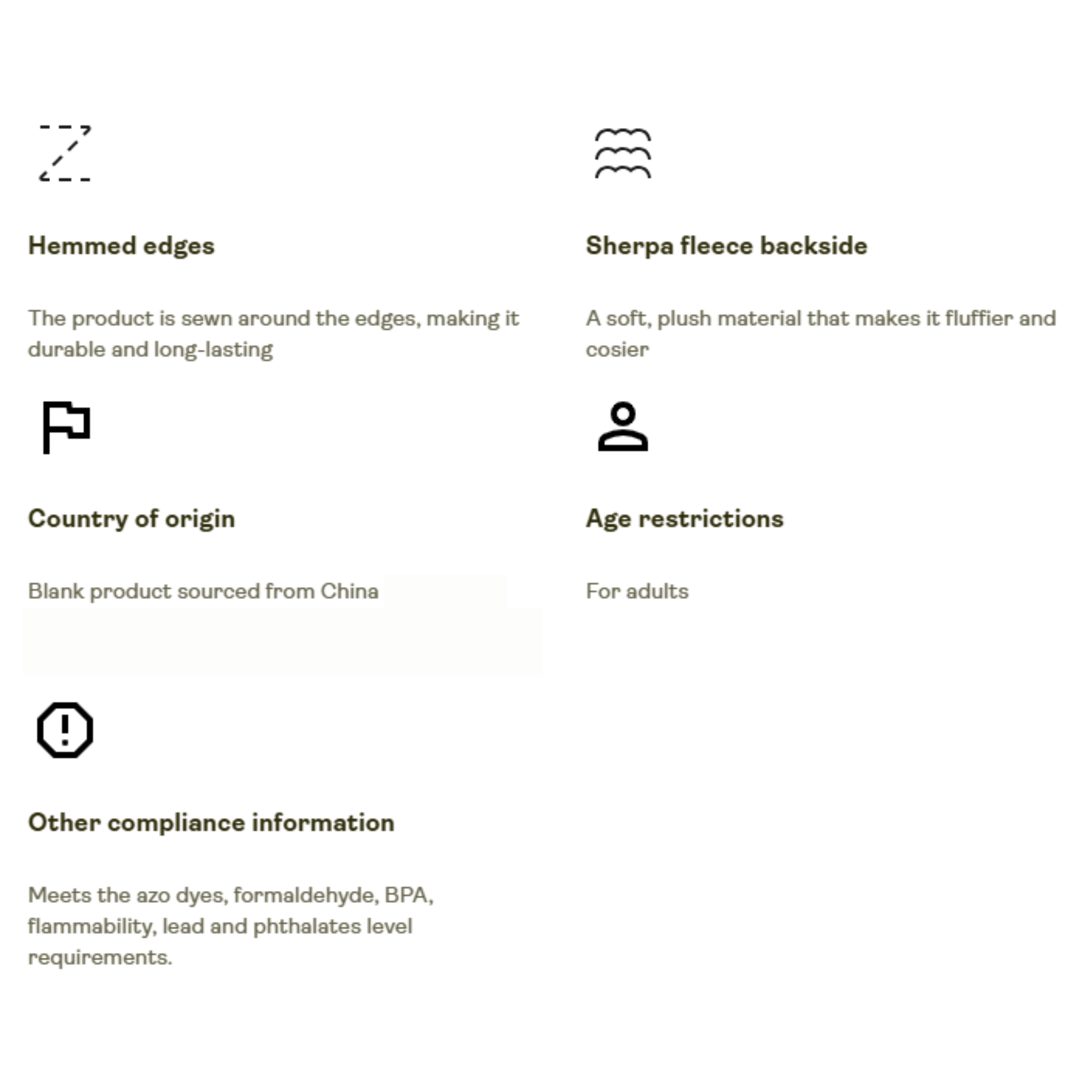 Warnings, Hazard: Blank product sourced from China , For adults