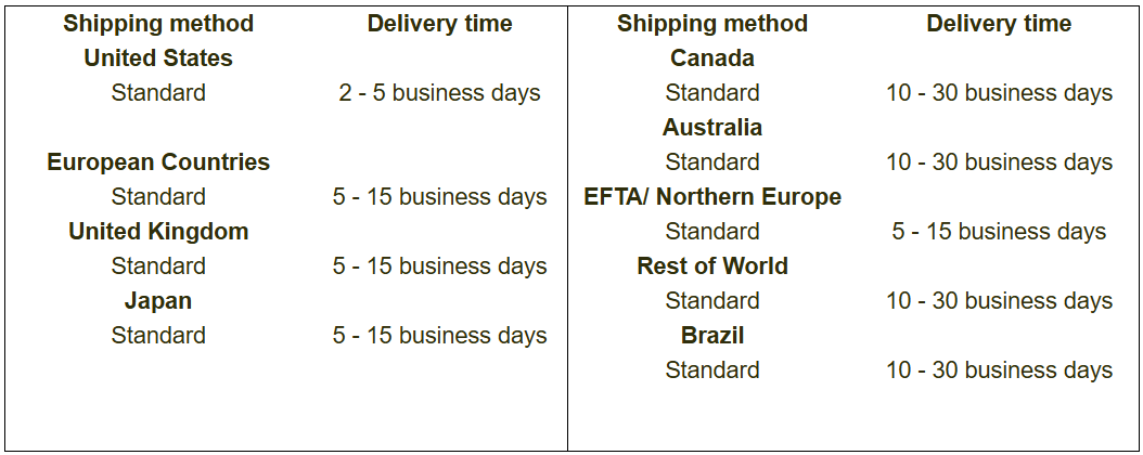 * Shipping to Alaska, Hawaii, Puerto Rico and unincorporated territories of the United States can take additional 7 – 12 business days.